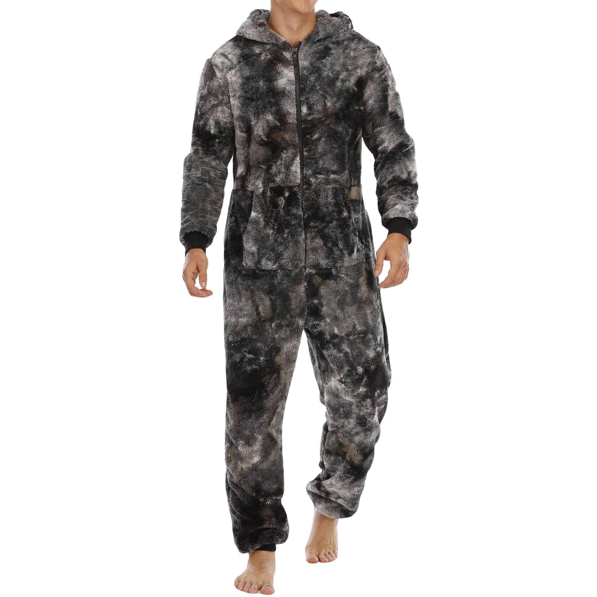 Autumn Winter Casual Flannel Onesies Hoodie Jumpsuit Pajama Men Jumpsuits Hoodie Zipper Sleepwear