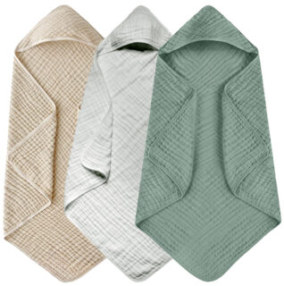 Hooded Baby Towels – 3-Pack Muslin Cotton Bath Towels for Newborns, Infants & Toddlers