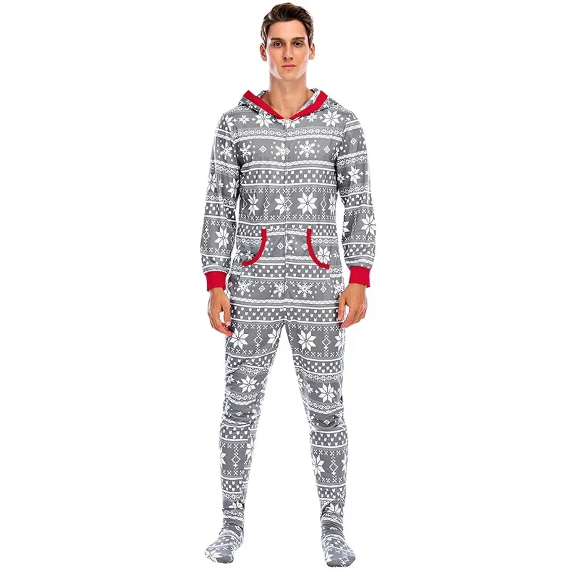 Men’s Pajamas Home Wear Printed Pajamas Men’s Long-sleeved One-piece Men’s European and American Christmas Men’s Pajamas Fall