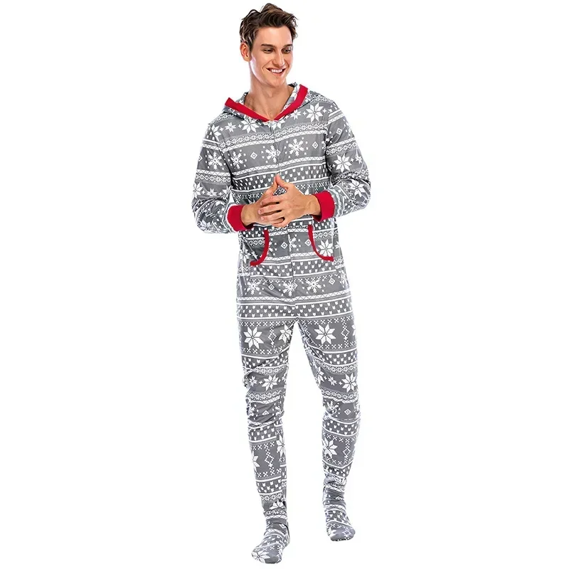 10 reviews for Men’s Pajamas Home Wear Printed Pajamas Men’s Long-sleeved One-piece Men’s European and American Christmas Men’s Pajamas Fall