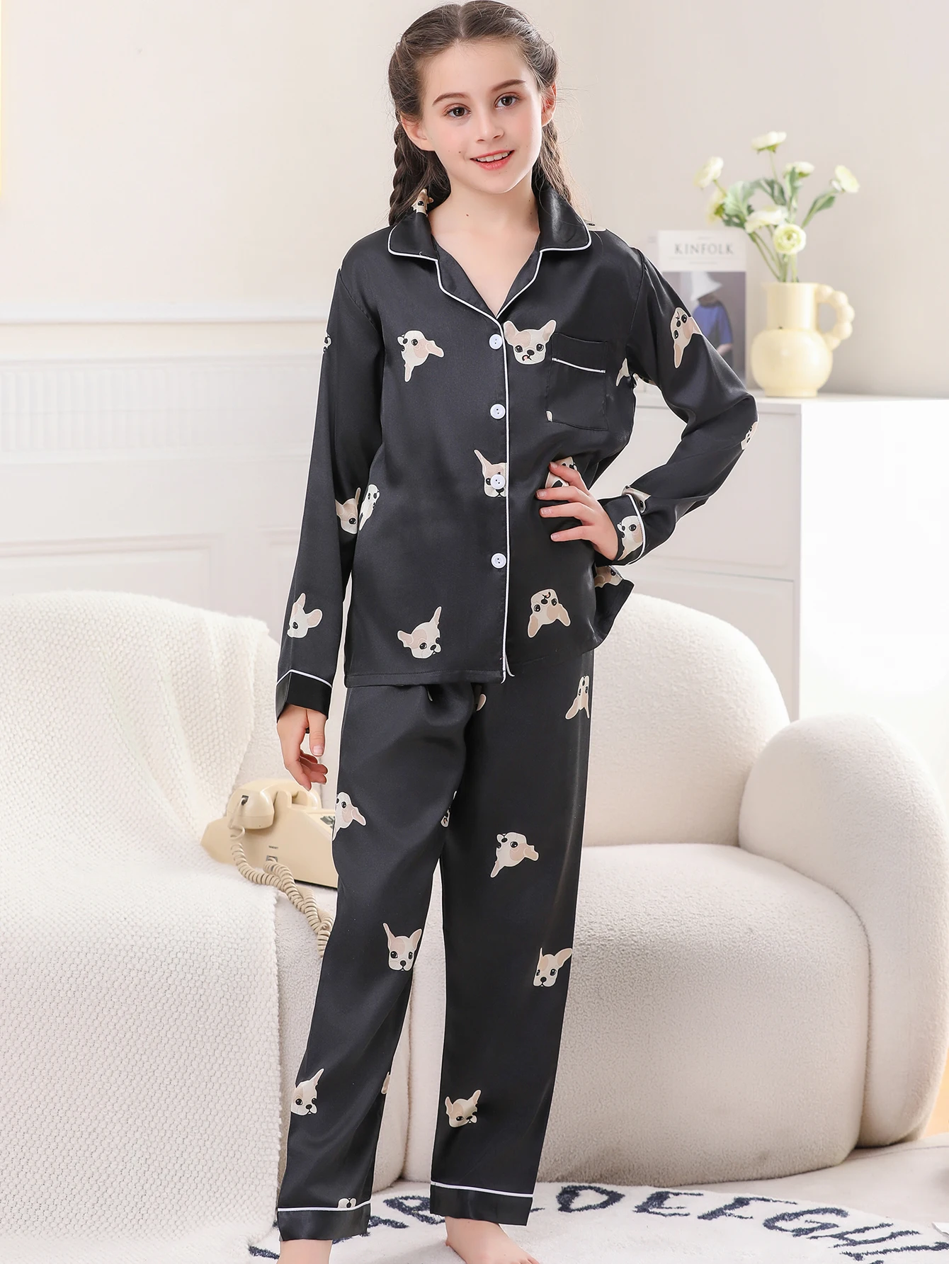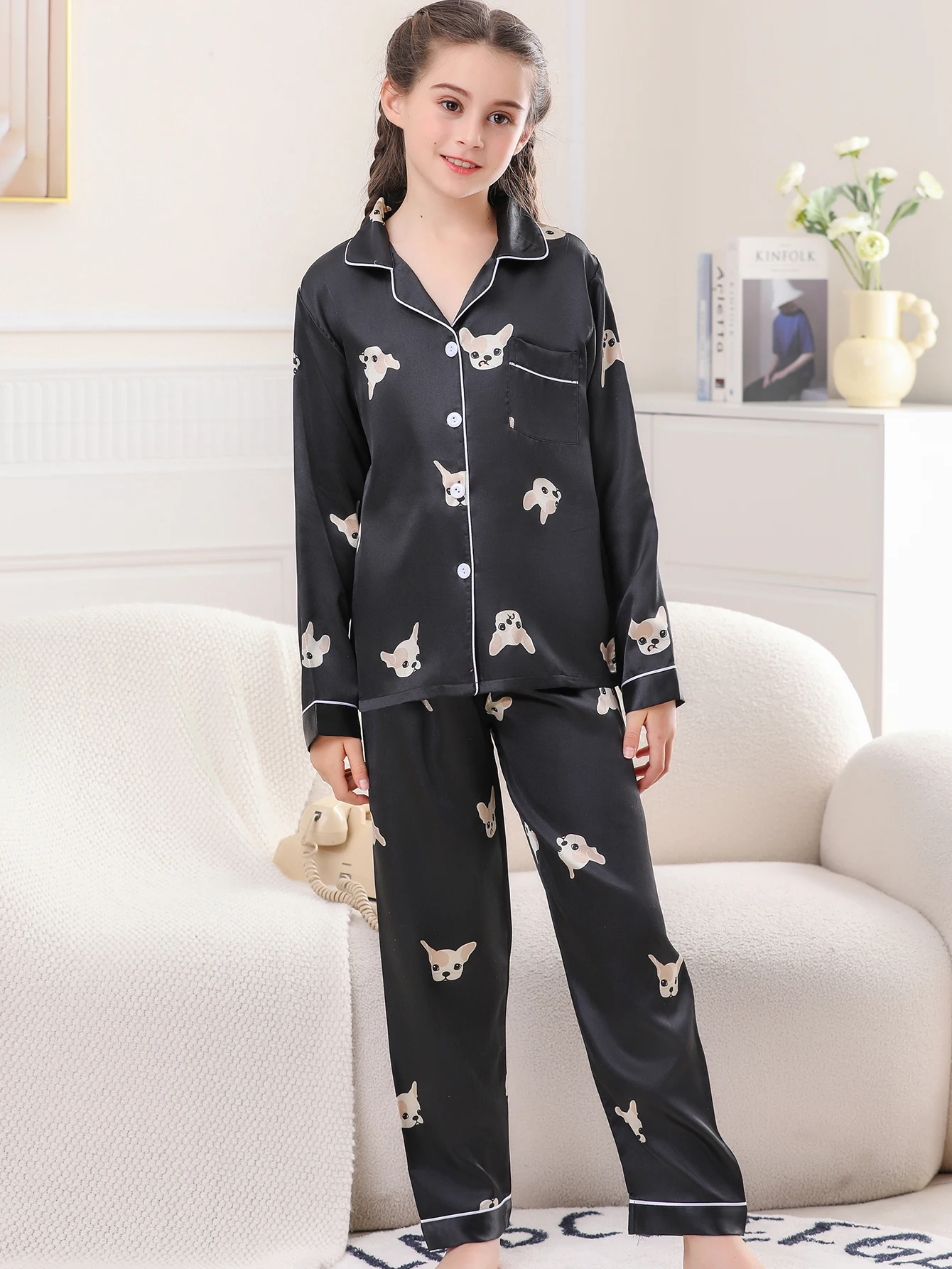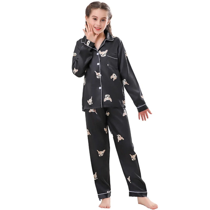 Children’s Loungewear Teenage Satin Sleepwear Spring Autumn Boy Girl Pajamas Kids Long Sleeved Pajama Set